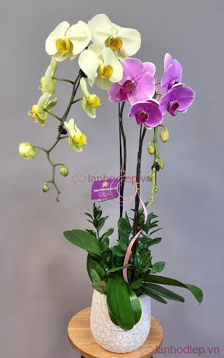 - Hoa trang trí không gian: Sieuthihoalan và Hoa Lan Hồ Điệp Đà Lạt cung cấp đa dạng các chậu lan, giỏ lan phù hợp để trang trí văn phòng, nhà ở, mang lại vẻ đẹp tươi mới và thanh lịch.