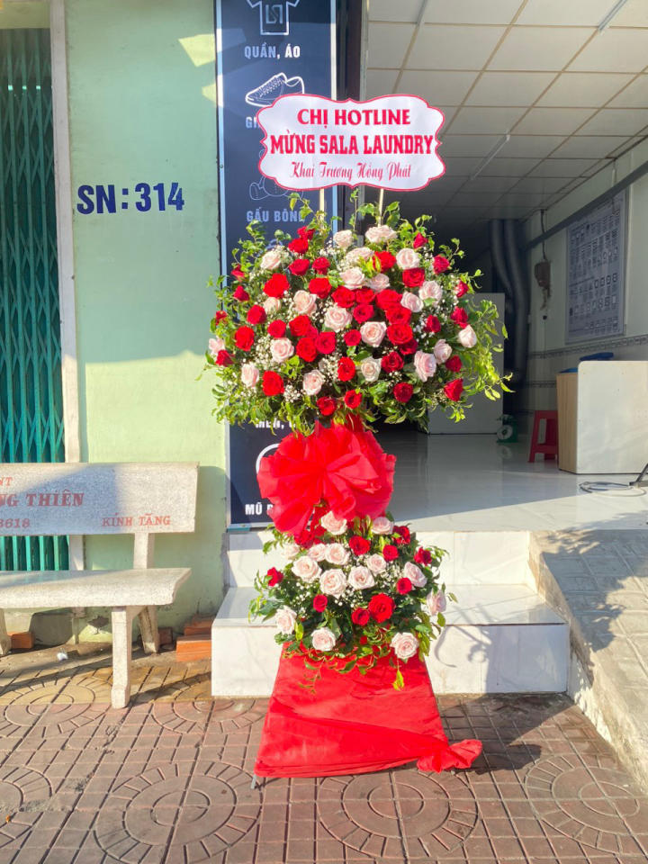 Kệ hoa chúc mừng – đỏ hồng thanh lịch